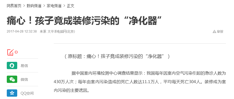 近年來隨著一些“入住新房即得病”的事件頻頻曝光,我們有責任有義務把裝修的污染源頭全部找到,這不僅是保護自己,更是保護孩子。
